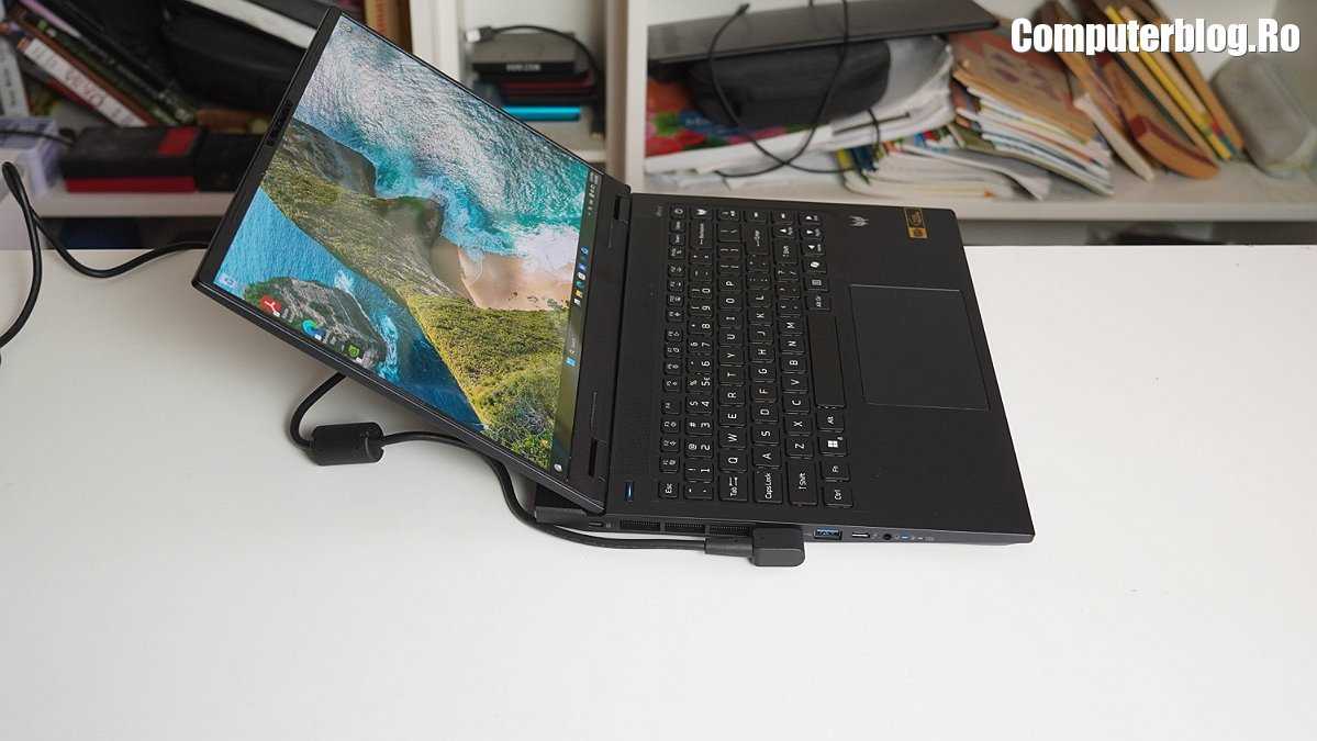 Componenta de stocare este deservită de unități Solid State Drive (SSD) în format M.2. Am avut la test varianta cu stocare de 2 TB. Comunicarea datelor se face pe baza interfeței PCI Express NVMe 4.0.