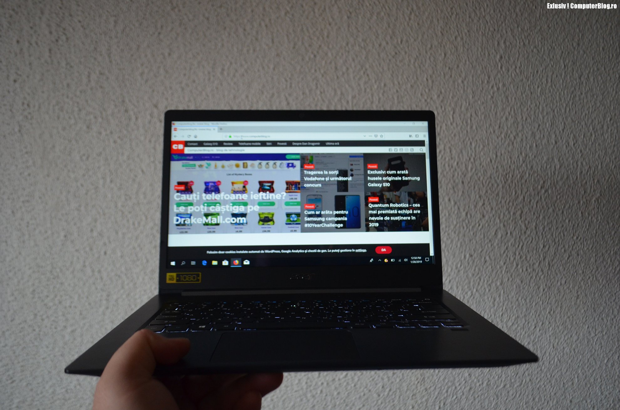Nu are placă grafică, doar soluția integrată Intel UHD 620 care se descurcă ok în majoritatea ocaziilor. Altfel mi-a plăcut mult că este cu adevărat foarte ușor, are autonomie de circa 10 ore și are mufe USB și HDMI. Într-adevăr, duce lipsă de LAN, dar cu un adaptor pe USB se poate conecta și la rețea. Are și o mufă USB Type-C.