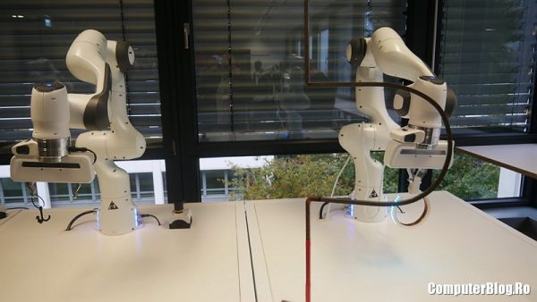 Una dintre demonstrații a fost cu utilizarea unor brațe robotice, care imitau perfect mișcările transmise de un utilizator uman, prin rețeaua 5G, de la distanță. Genul de aplicație pentru telemedicină, operații la distanță și așa mai departe. Iar mișcările au fost imitate perfect de fiecare dată, în timp real. Probabil există acum și alte aplicații posibile, dar scenariul cel mai important cred că rămâne operația la distanță.