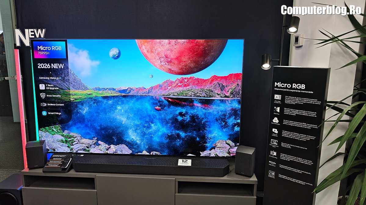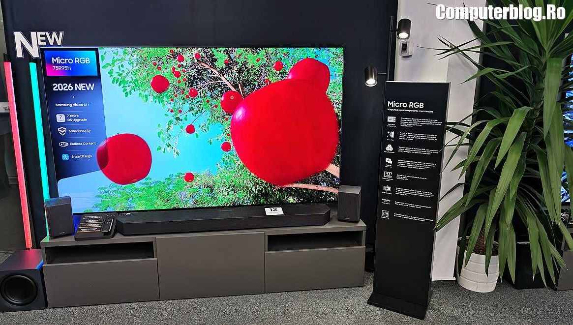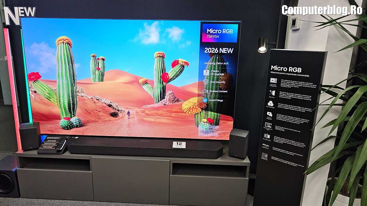 Am văzut noua generație de televizoare Samsung pentru 2026, le-am împărțit pe cele trei tehnologii dominante ale anului. Vedeta de anul acesta este tehnologia MicroRGB. Apoi vin modelele cu OLED, iar pentru publicul larg există tehnologia MiniLED.