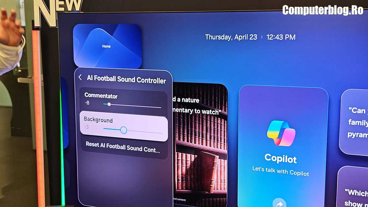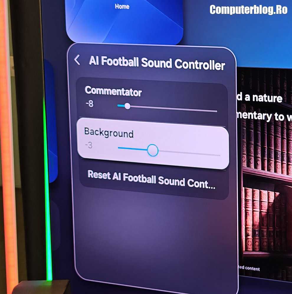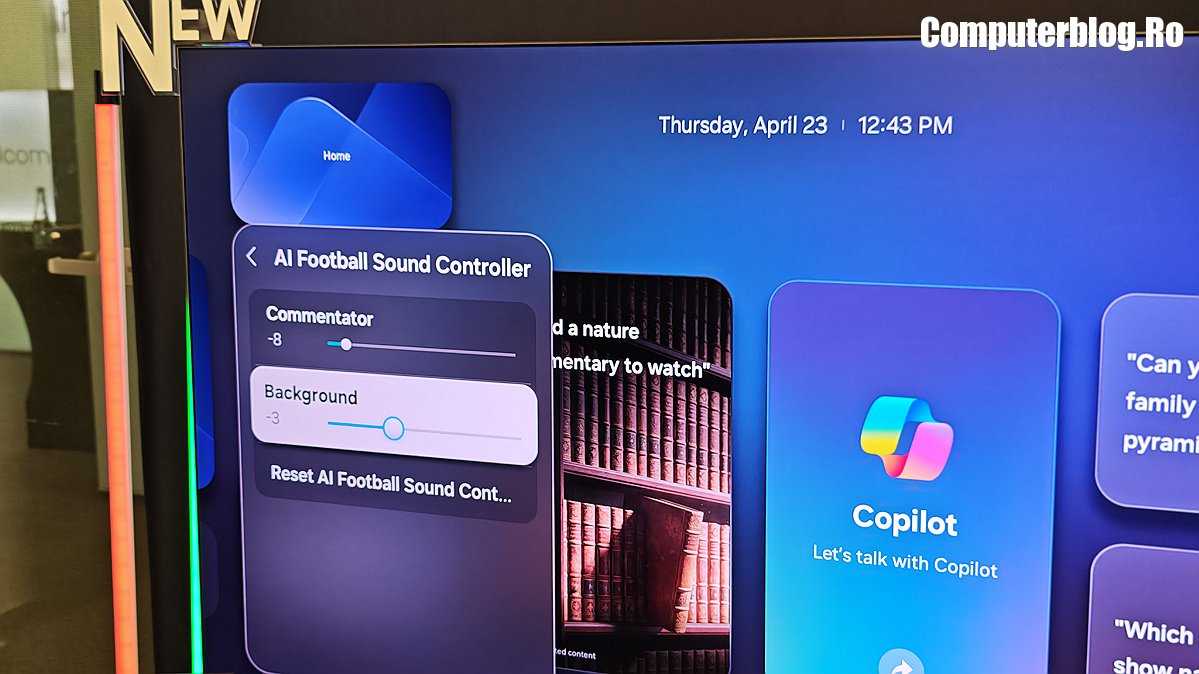 Gama de televizoare cu inteligență artificială de la Samsung îmbunătățește calitatea filmelor, sportului și jocurilor cu optimizare în timp real. AI Upscaling Pro îmbunătățește claritatea conținutului la rezoluție mică, oferind o claritate, profunzime și contrast îmbunătățite. AI Soccer Mode Pro adaptează imaginea și sunetul pentru a se potrivi vitezei și intensității jocurilor live. AI Sound Controller Pro analizează dialogul, muzica de fundal și efectele sonore, permițând utilizatorilor să ajusteze fin elemente precum zgomotul mulțimii și comentariile pentru o experiență mai captivantă.