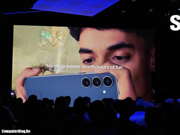 Are un ecran Dynamic AMOLED 2X de 6,7 inch, cu rezoluție 2340×1080 px, rată de reîmprospătare de 120 Hz și Gorilla Glass Victus+, chipsetul Exynos 2400, 8 GB de RAM și 128 GB de stocare, cu variante mai scumpe de 256 și 512 GB.
