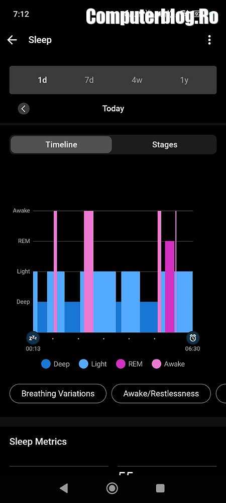 Am avut ocazia să testez și accesoriul pentru somn. Index Sleep Monitor ste o bandă inteligentă, ușoară și confortabilă de purtat pe braț, special concepută pentru monitorizarea somnului. Este ideală pentru utilizatorii Garmin care nu doresc să poarte ceasul inteligent în timpul somnului. Urmărește stagiile de somn (somn adânc, ușor, REM). Monitorizează pulsul și variabilitatea ritmului cardiac (HRV). Evident, saturația de oxigen din sânge (SpO2) și respirația pe timpul nopții. De asemenea, monitorizează nivelul de stres și Body Battery (recuperarea energetică).