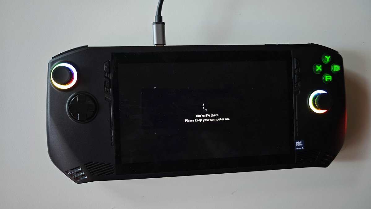 Conform testelor, un joc precum Forza Horizon 5 a rulat aproximativ 2 ore pentru ca bateria lui Claw să ajungă la 0%. Țineți cont că este nevoie de 106 minute pentru a încărca complet dispozitivul cu alimentatorul de 65W inclus. Cam 80 % este disponibil din nou după aproximativ o oră la priză. Dar dacă sunteți la priză, puteți încărca în timp ce vă jucați fără griji.