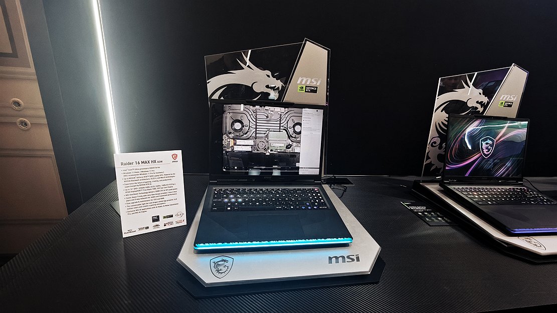 Raider 16 Max HX: vedeta show-ului, declarat cel mai puternic laptop de 16 inchi din lume, capabil de un consum total de 300W. Vine cu noile procesoare Intel Core Ultra 200HX și grafică NVIDIA RTX 5090.
