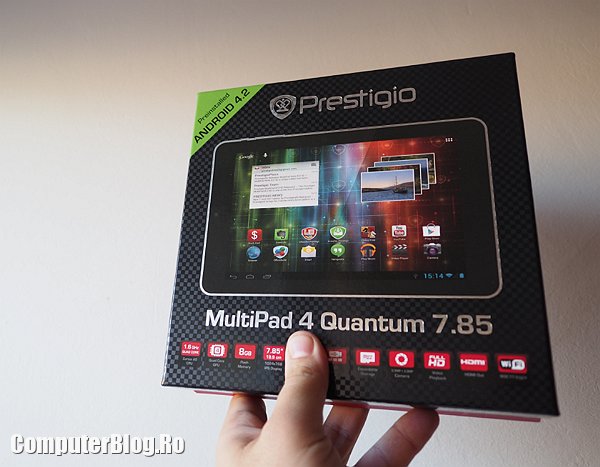 Prestigio MultiPad 4 Quantum 7.85 mi-a confirmat așteptările: au făcut încă un pas înainte spre o gamă de produse performantă și cu preț bun. Modelul aduce procesor quad-core la 1,6GHz, 1GB de RAM, stocare internă de 8GB și un accelerator grafic bun, Mali 400 MP, la un preț de 749 lei. Cred că este o achiziție bună dacă vă doriți așa ceva. Mi-a plăcut ecranul măricel, în format 4:3, tocmai bun pentru citit. Bateria este mare, 4700 mAh, iar tableta stă bine în mână și are o husă excelentă în pachet, ca de obicei.