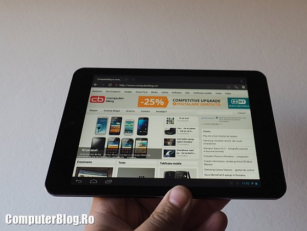 Procesorul (CPU) este acceptabil, dar cred ca procesorul grafic (GPU) il incetineste un pic la navigarea web – am observat ca e un model (mali 400) folosit si la telefoane, cei 7.85 inch ai tabletei necesitand timpi superiori de incarcare a continuturilor.