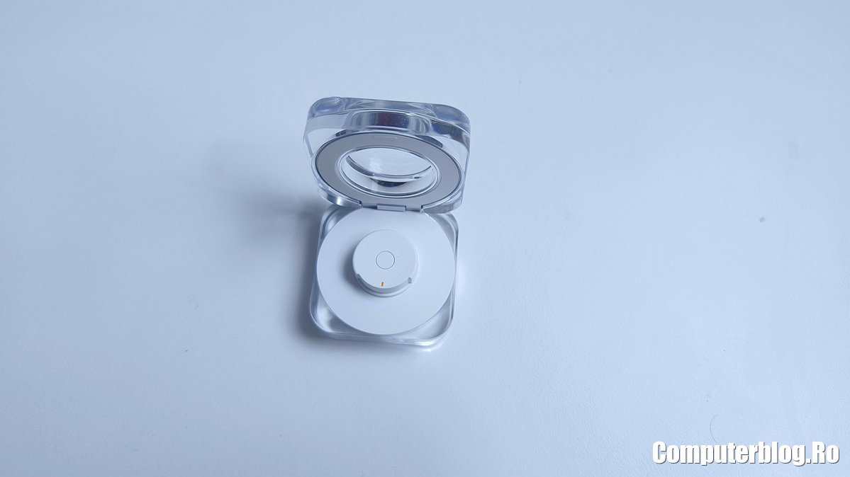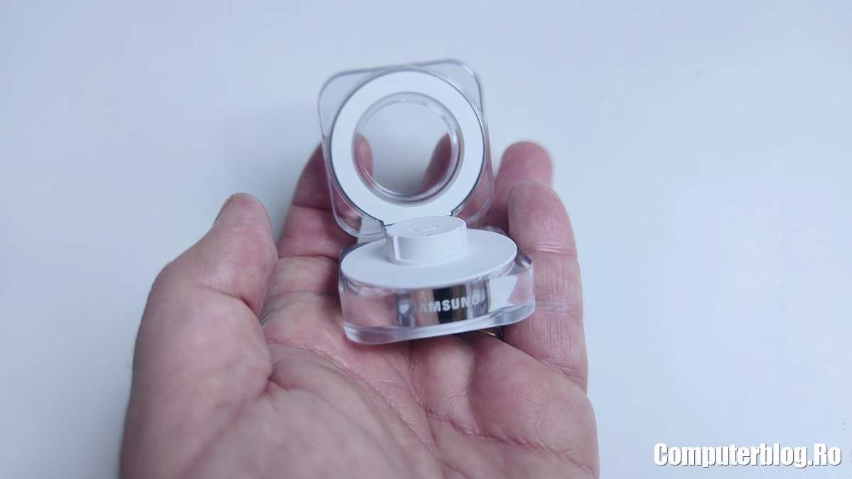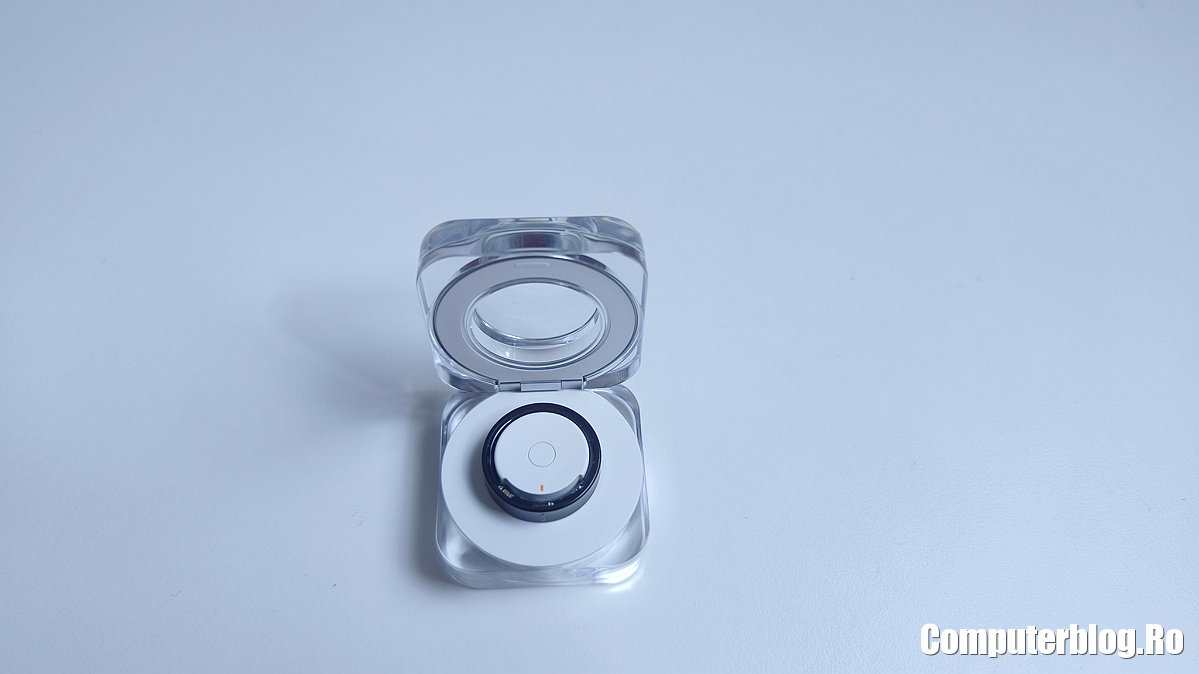 Este primul gadget Samsung la care nu ai nicio problemă cu bateria. Ceasurile țin 2-3 zile, poate un pic mai mult cu măsuri de precauție. Inelul ține o săptămână. Uit de el, iar când primesc notificarea că nu are baterie doar trebuie ținut un pic în cutie. În șase săptămâni o singură dată am încărcat cutia. Este inspirată de la căști și e mai bine făcută decât cea de la căștile Samsung. De exemplu, când deschizi capacul, în jurul suportului de inel este o bandă luminoasă care arată cam câtă energie mai are cutia. Dacă e aprinsă, e ok, pui inelul și se încarcă destul de rapid. Dacă nu, trebuie să o conectezi la priză, merge la orice încărcător de telefon cu USB-C. Cutia are nevoie de 1,5 ore de la 0 la 100%.