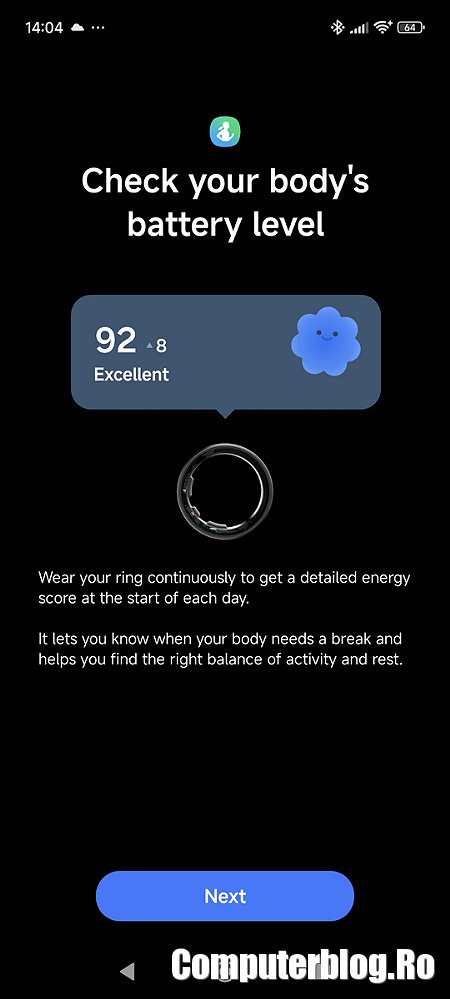 Aplicația de Samsung Health ar fi trebuit să facă și partea de conectare, dar ei au gândit cele două separat. Probabil pe telefonul Samsung nu te deranjează asta, dar pe mine pe un alt telefon uneori mă încurcă.
