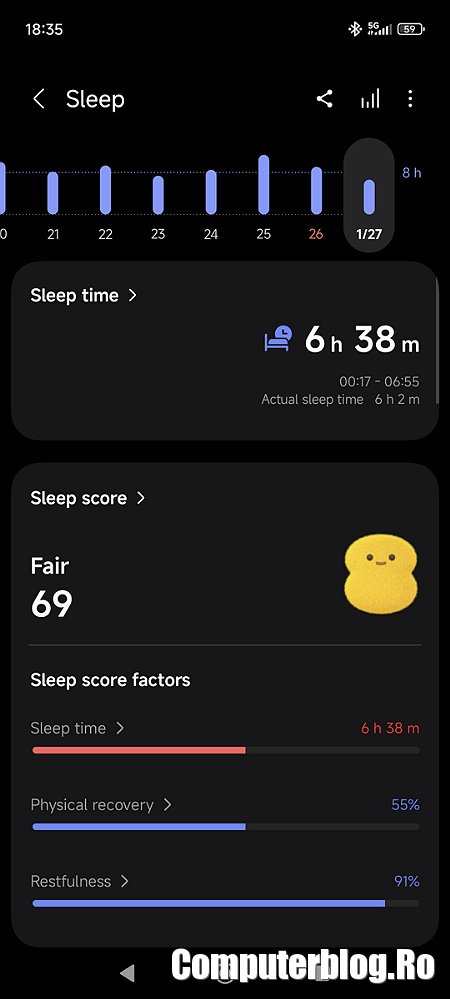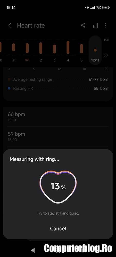 Sistemul care implică luarea anterior a măsurilor s-a dovedit bun, inelul stă comod pe deget, nici nu strânge, dar nici nu îl scap. Uit deseori de el și primesc notificarea când rămâne fără baterie. Dar m-am uitat pe date și coordonat cu ceea ce am pe ceas, sunt foarte precise informațiile. M-am lipit acum și de un ceas pe care nu-l mai dau jos de la mână. Dar știu cum este, multă vreme nu am suportat nici benzile, nici ceasurile. Și pe vremea aceea nu aveam inelul. Este ideal pentru sport. Ceasul tot îl simți, chiar dacă e comod. Ceasul tot îl lovești dacă nu ești atent. Ceasul trebuie scos la Otopeni pe aeroport. Inelul deloc. Cel puțin mie nu mi-a zis nimeni și eu nu l-am scos. Am trecut fluierând pe la control.