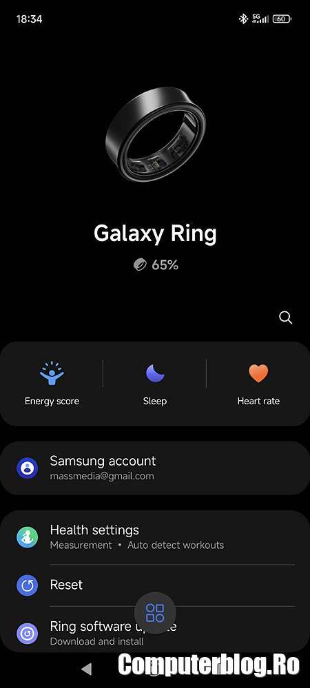 Cutia este destul de ușoară și comod de luat pe drum. Stă în buzunar sau geantă, fără să vă deranjeze. Este necesară strict doar atunci când trebuie reîncărcat. Inelul necesită două aplicații Samsung: Galaxy Wearable pentru pairing și conectare, precum și Samsung Health pentru prezentarea informațiilor într-un format mai grafic. Văd că Google Fit nu a știut să preia automat datele, are niște informații, dar diferă și de inel, precum și de cele de pe ceas. Cred că ia date despre distanțele parcurse din telefon.