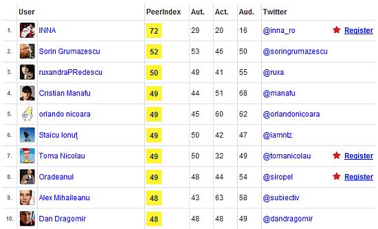 Topul e o lista de pornire atat ca numar de utilizatori cat si ca baza de calcul pentru scoruri cat mai exacte asupra influentei fiecaruia. In perioada asta de test o sa se modifice semnificativ atat clasamentul cat si cifrele individuale. O sa vedem la final cum arata.