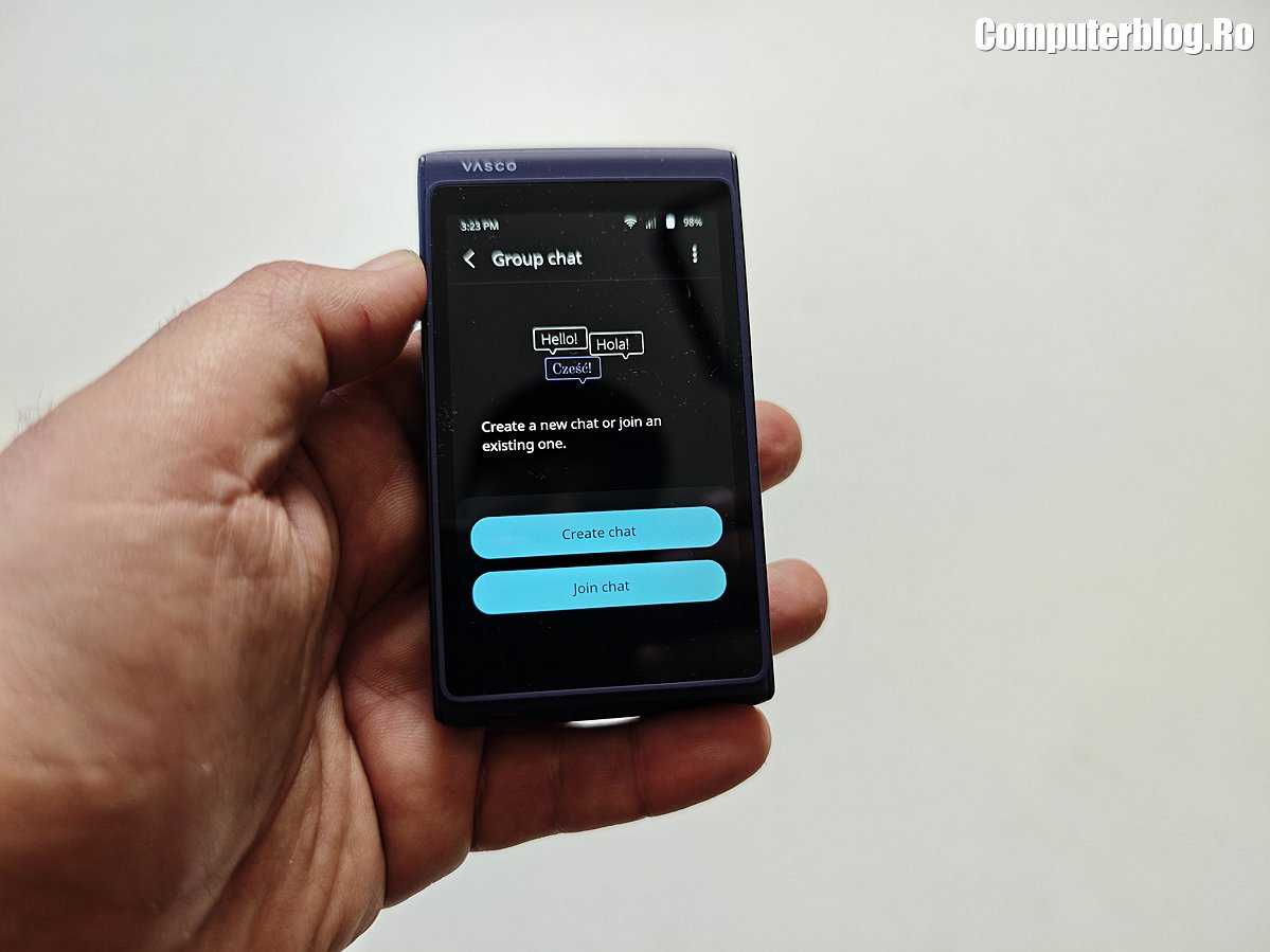 Vasco a implementat de asemenea funcția MultiTalk pentru grupuri de persoane. Vă întâlniși cu un bulgar și un sârb? Nicio problemă. Se poate vorbi simultan cu până la 100 de persoane diferite. Aparatul se poate utiliza și pentru videoconferințe, grupuri de turiști cu ghid și alte interacțiuni în limbi străine.