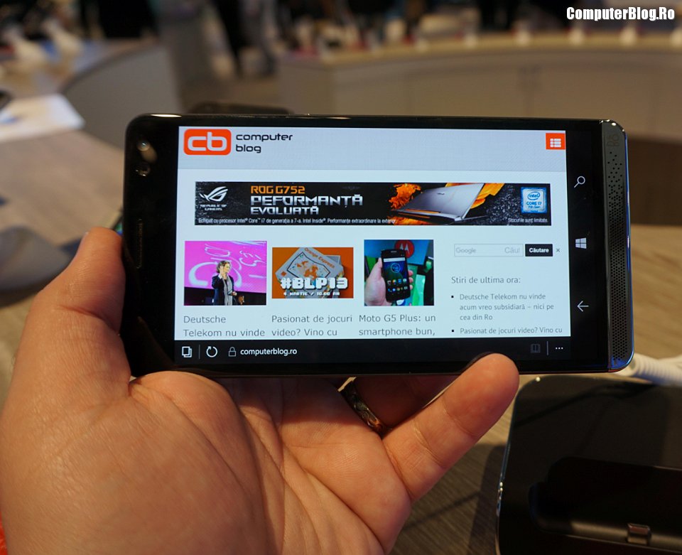 HP Elite X3 are procesor Qualcomm Snapdragon 820, 4GB de RAM, stocare internă de 64GB și slot de carduri de memorie microSD. Ecranul este de aproape 6 inch (5.96 inch), cu rezoluție 2K. Cum vă spuneam, anul ăsta m-au impresionat ecranele mari, iar HP Elite X3 vine cu funcția Windows Continuum, îl pui în dock și ai posibilitatea să lucrezi ca pe un desktop – cu monitor, tastatură, mouse. Practic el anunță viitorul mobilelor despre care tot vorbim, în care smartphone-ul sau tableta vor lua locul computerului, vor fi tot mai des folosite și la birou și acasă, în detrimentrul computerului clasic. Doar să ajungă la experiența similară, la nivel de putere de procesare cred că au depășit deja PC-ul ieftin.