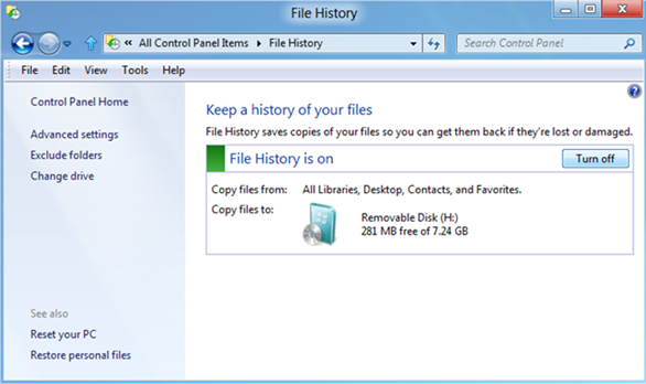 Windows 8 va include File History, un sistem de backup în timp real. În timp ce mulți contestă decizia celor de la Microsoft de a elimina butonul de Start (care stătea la locul lui încă de pe vremea Windows 95-ului), eu am decis că trebuie să analizez cu atenție noile funcții implementate sistemului de operare, care într-adevăr merită să fie luate în calcul.