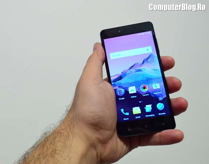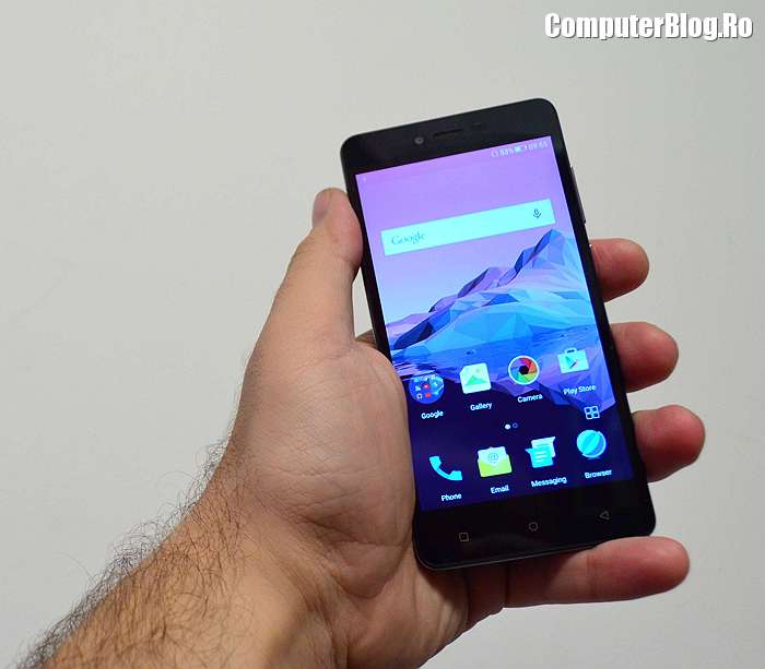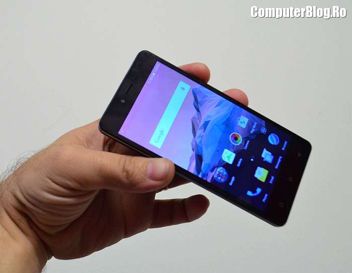 Platforma software este Android 5.0, arată bine și se mișcă foarte bine. Aș mai menționa bateria integrată de 2.400 mAh. Are toate tehnologiile necesare, WiFi, Blutetooh, accelerometru, senzor de proximitate, busolă, senzor magnetic. Testele de performanță au arătat că are 1/3 din puterea unui vârf de gamă. Scorul a ieșit 29.000 de puncte în Antutu pe 64 de biți, cele mai puternice telefoane ajung la 72-73.000. Modelele mai scumpe ajung la 40.000 de puncte. Un telefon foarte ieftin este aproape de scorul unor terminale de peste 1.000 de lei.