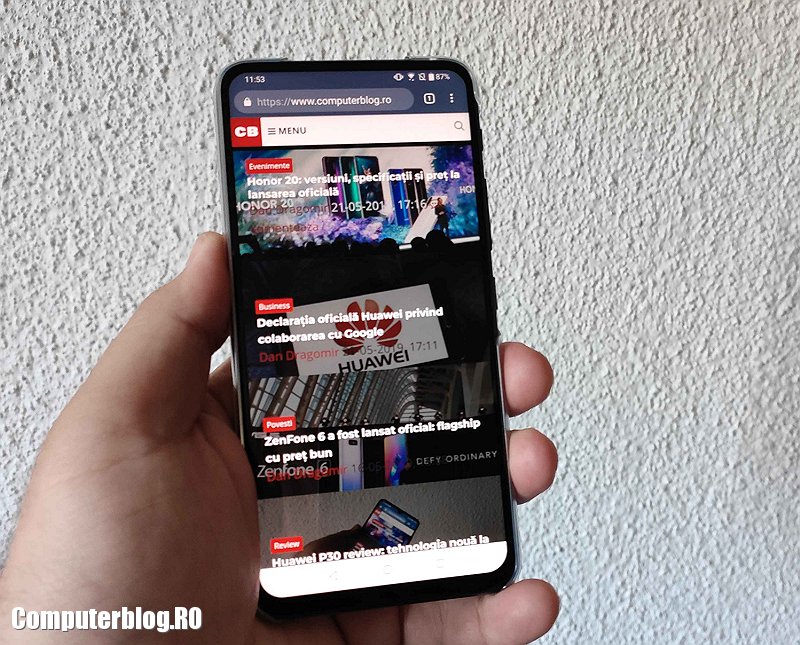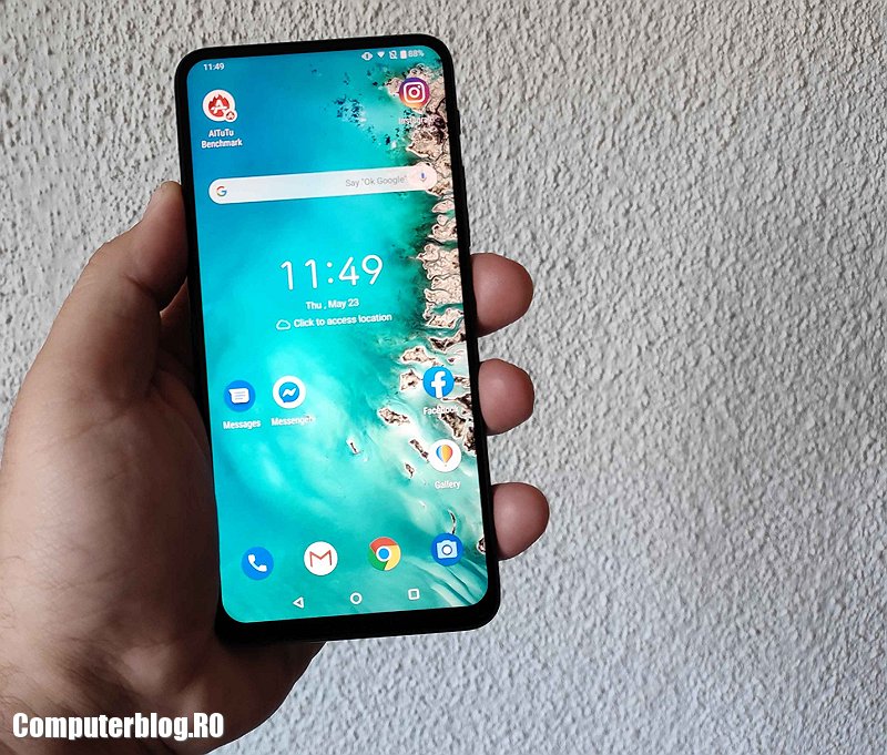 Ecranul de 6.4 inch este pe formatul 19.5:9, mi se pare foarte ok, stă plăcut în mână și nu este deloc mare sau gros. Da, este un ecran FHD+, 2340×1080 pixeli, IPS LCD. Ar fi mers probabil OLED sau AMOLED, dar în același timp ar fi crescut prețul terminalului.