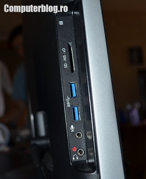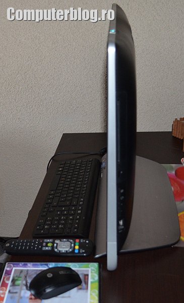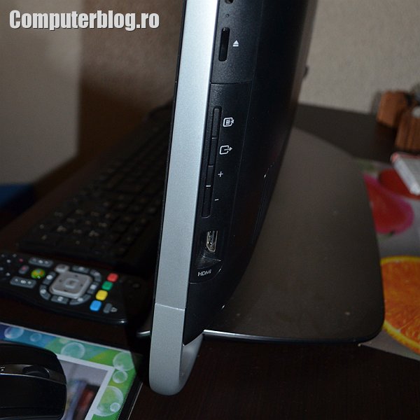 HP Omni 27-1080ea AIO nu are ecran touch, dar are în schimb telecomandă pentru control de la distanță. Având unitate optică integrată poți rula filme și te poți uita liniștit de pe canapea. Ecranul este excelent, LED backlit cu diagonala de 27 de inchi, Full HD 1920×1080 de pixeli, wide screen. Vine în cutie, pe lângă telecomandă, cu o tastatură subțire și un mouse wireless, ambele se conectează cu un adaptor USB care ocupă automat unul din porturi. El are automat 2 USB-uri 2.0 și alte două 3.0. Deci e ok per-total.
