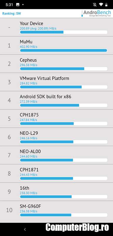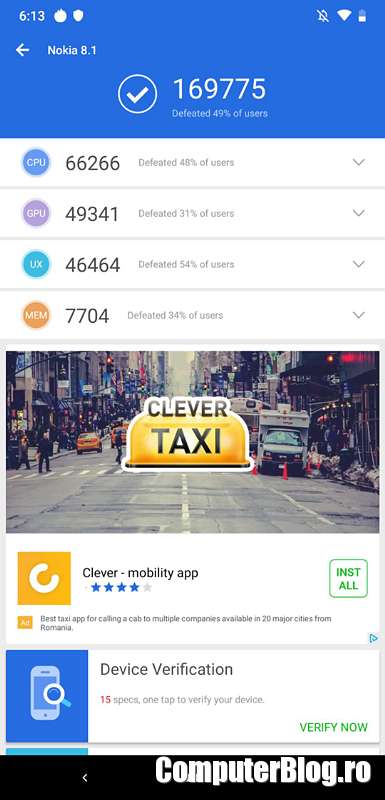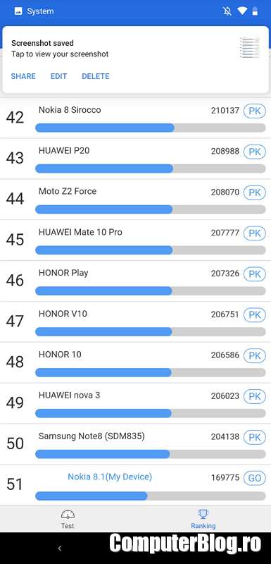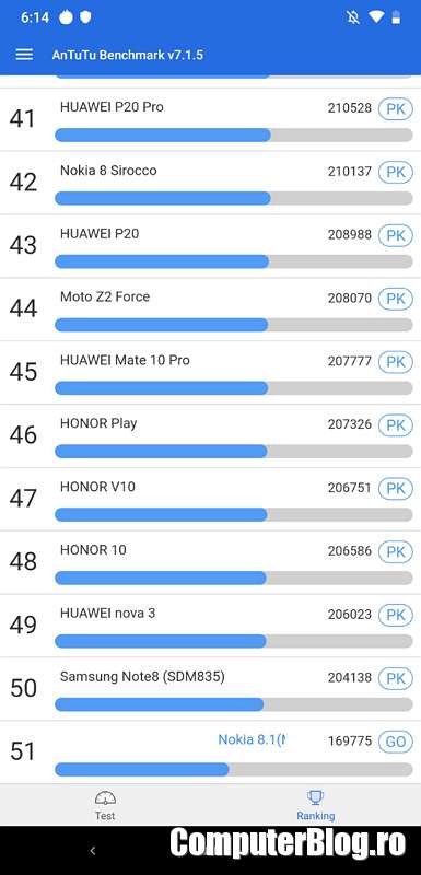 Câteva teste de performanță realizate pe Nokia 8.1: