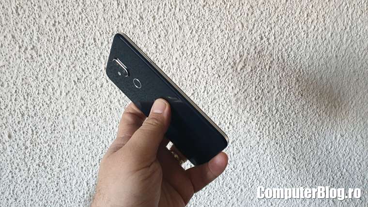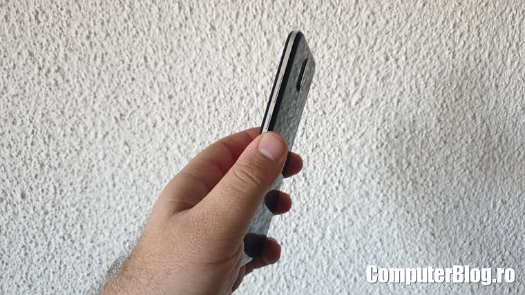 Modulul de cameră foto cam iese în afară, nu este ceva neobișnuit, dar este la fel de riscant în cazul unei căderi. Vă recomand husele de protecție care feresc cumva și camera de pe spate. Sub camere este senzorul de amprentă, destul de bun și rapid.