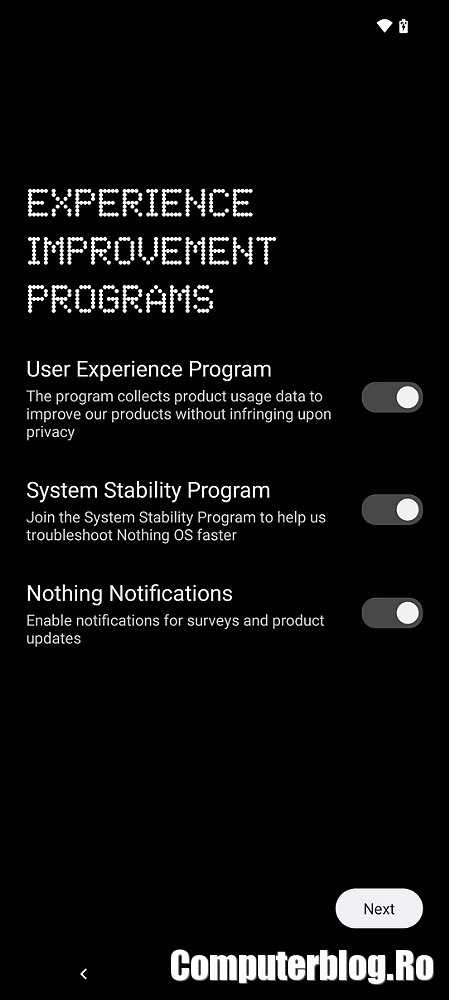 Include patru lucruri esențiale pentru o experiență plăcută cu telefonul. Funcția de curățare inteligentă, dezvoltată de Nothing, identifică și șterge în mod regulat fișierele de sistem neutilizate generate de utilizarea individuală. Când fragmentele de fișiere nu mai sunt utilizate, spațiul rămâne ocupat și afectează vitezele de scriere și citire. Această procedură are loc în