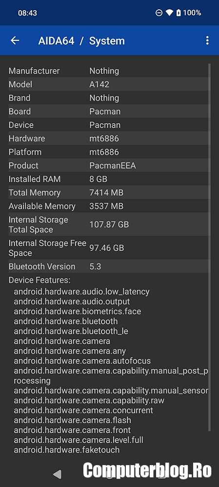 OS: Android 14, Nothing OS 2.5.4