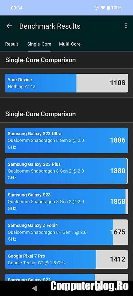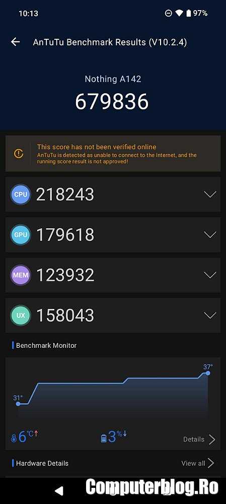 Am supus Nothing Phone (2a) la principalele teste obișnuite. Nu este telefon de gaming, dar am rămas surprins că nu are mod de gaming sau performanță. Este alt mod în care producătorii jonglează între performanță și autonomie. Odată activat acest mod, procesorul este stimulat să lucreze la performanță mai ridicată, dar consumă din baterie mai mult. Așa că activezi modul doar când vrei. Dar ai scoruri mari în teste și poți juca titluri interesante. Nothing obține doar scoruri normale. Deși ei prezintă procesorul ca fiind modificat, însă singura modificare reală pare denumirea de Dimensity 7200 Pro, în loc de Ultra. Dar tehnic nu pare să fie schimbat nimic.