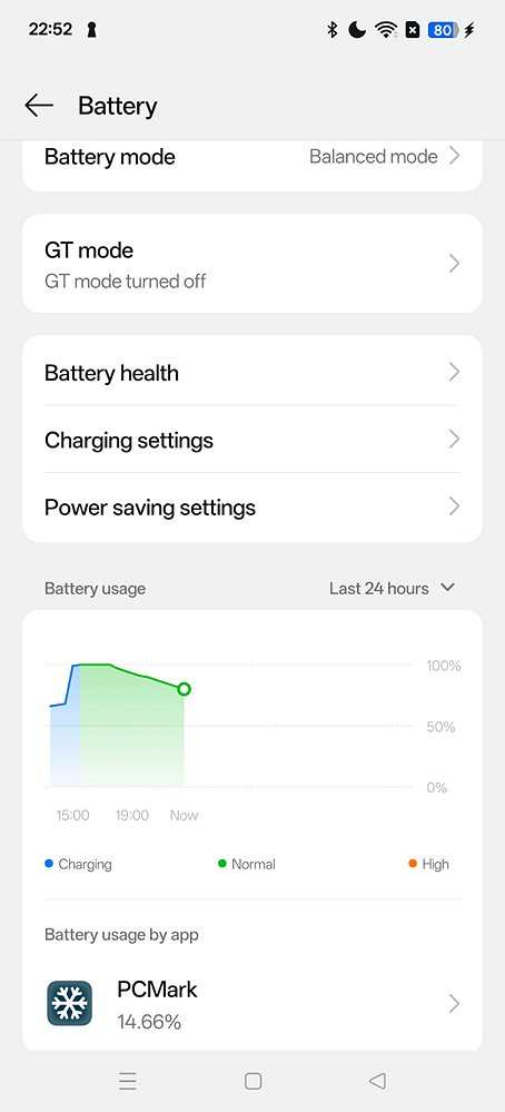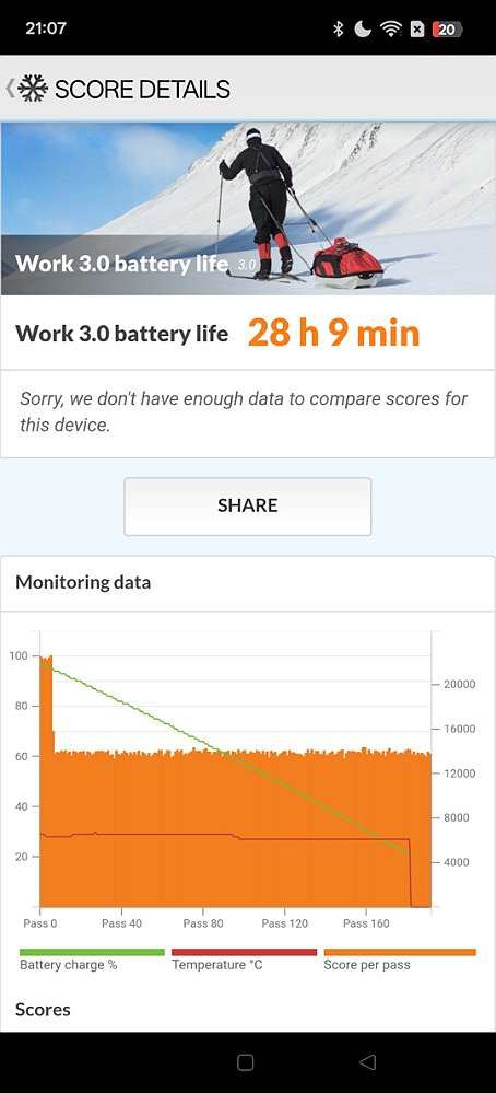 Cea mai bună veste a fost la autonomie. Pe lângă faptul că se încarcă foarte repede, doar 13 minute pentru a ajunge la 50% și 37 de minute 100%, a ținut mult. În primul test 20 de ore și 42 de minute fără nicio setare specială. Apoi cu Power Saving activat a ținut 28 de ore. Cu mult peste rivali.