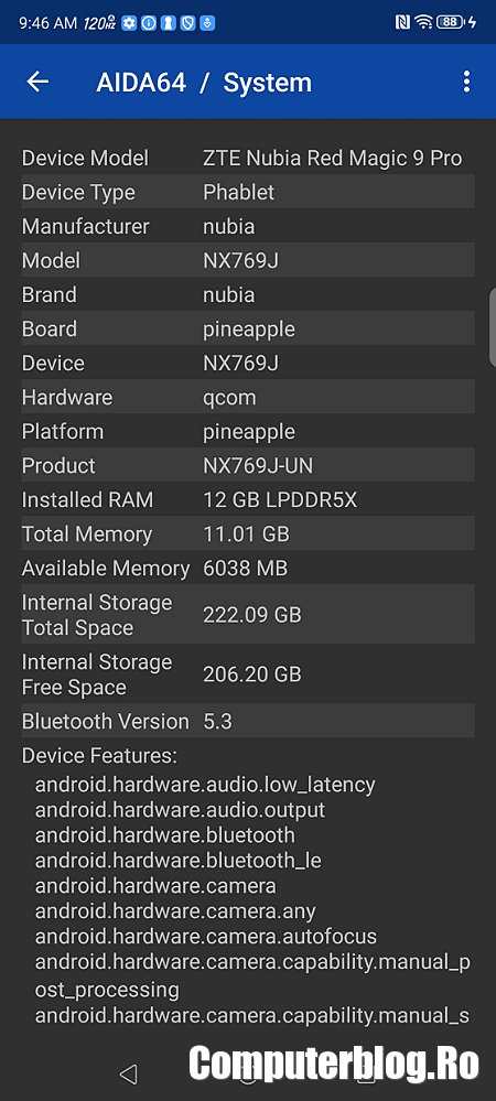 Detalii tehnice REDMAGIC 9S Pro