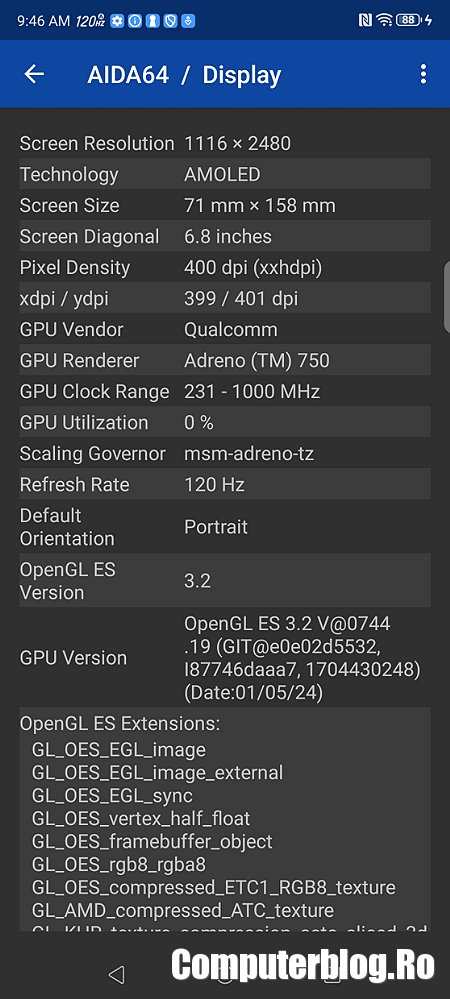 Ecran: 6.8 inch, AMOLED, 2480×1116 pixeli, 120Hz, 1600 nits, Corning Gorilla Glass 5