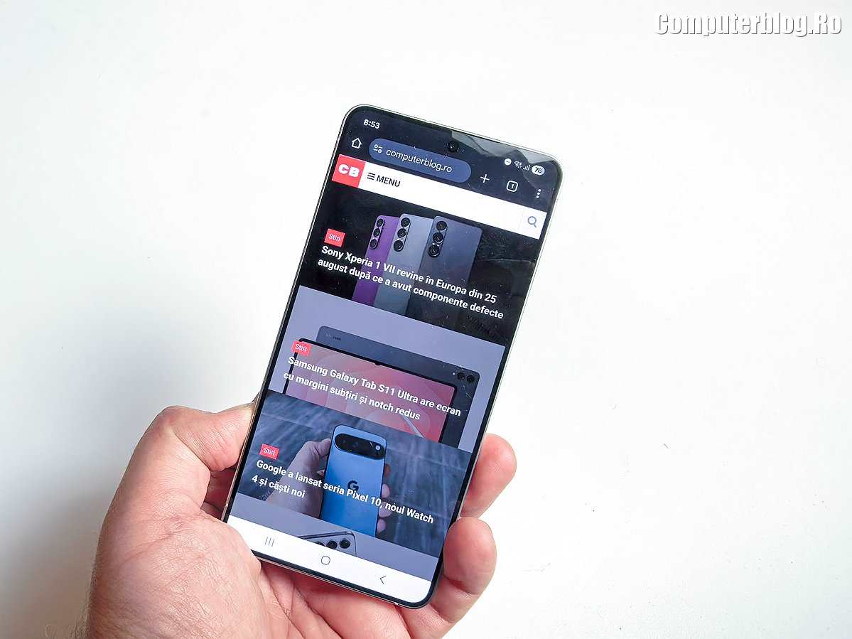Bateria rămâne de discutat. Diferența față de una normală nu este mare, dar există. La 3.900 mAh cu siguranță nu treci de o zi muncă de utilizare normală. Cu Samsung deseori nu treci ziua nici cu cel normal. Dar vedeți, aici totul depinde de mulți factori. Odată setat la cea mai bună experiență grafică (rezoluție maximă, refresh maxim, culori Vivid, luminozitate manuală), telefonul va consuma bateria mai ales dacă este utilizat pe video (TikTok, Instagram, Reels), dar și în aplicații, jocuri și alte lucruri. Dacă activați măcar Power Saving, sau măcar îl treceți pe acest mod când nu este folosit, viața bateriei se va prelungi.