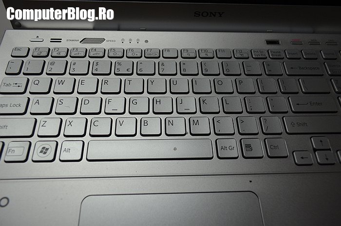 Tastatura mi se pare una dintre cele mai bune/comode. A fost totdeauna un atuu al Sony Vaio, butoanele bine definite și bine poziționate. Unitatea optică integrată ajută mult, vă spun din experiență. Alte atuuri Vaio sunt tasta Assist care te poate ajuta să scapi de problemele întâmpinate. De asemenea, tasta Web pentru atunci când vrei să navighezi rapid și să nu mai aștepți pornirea Windows (reduci și consumul de energie).