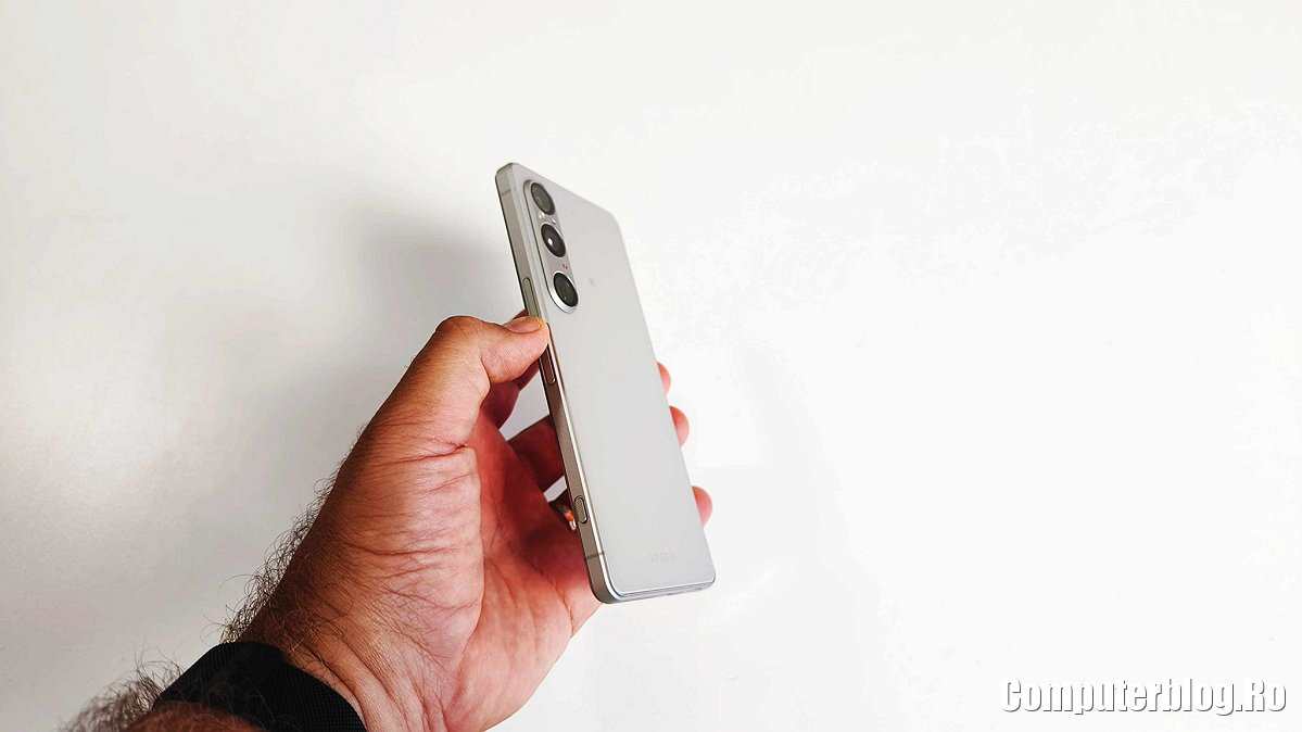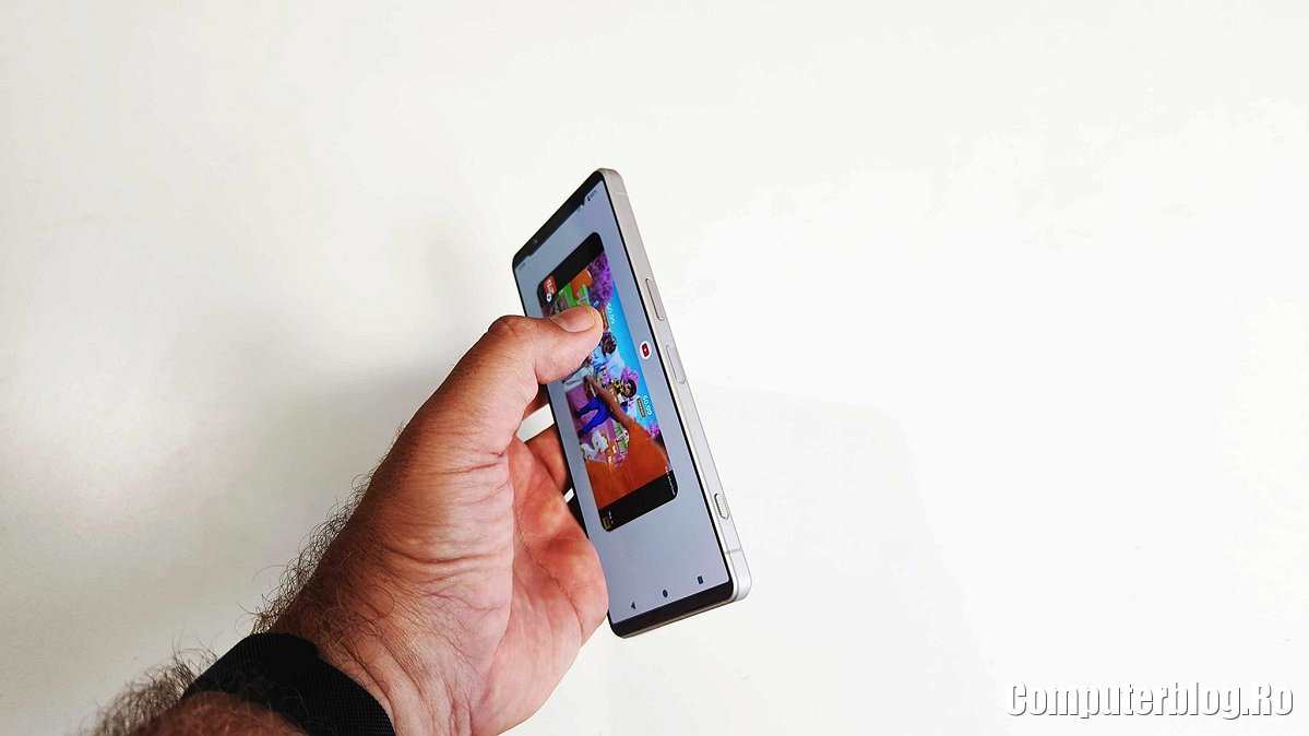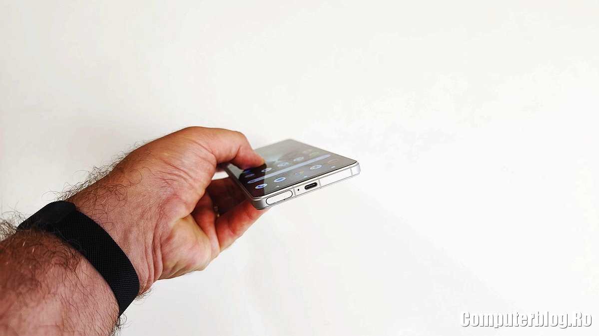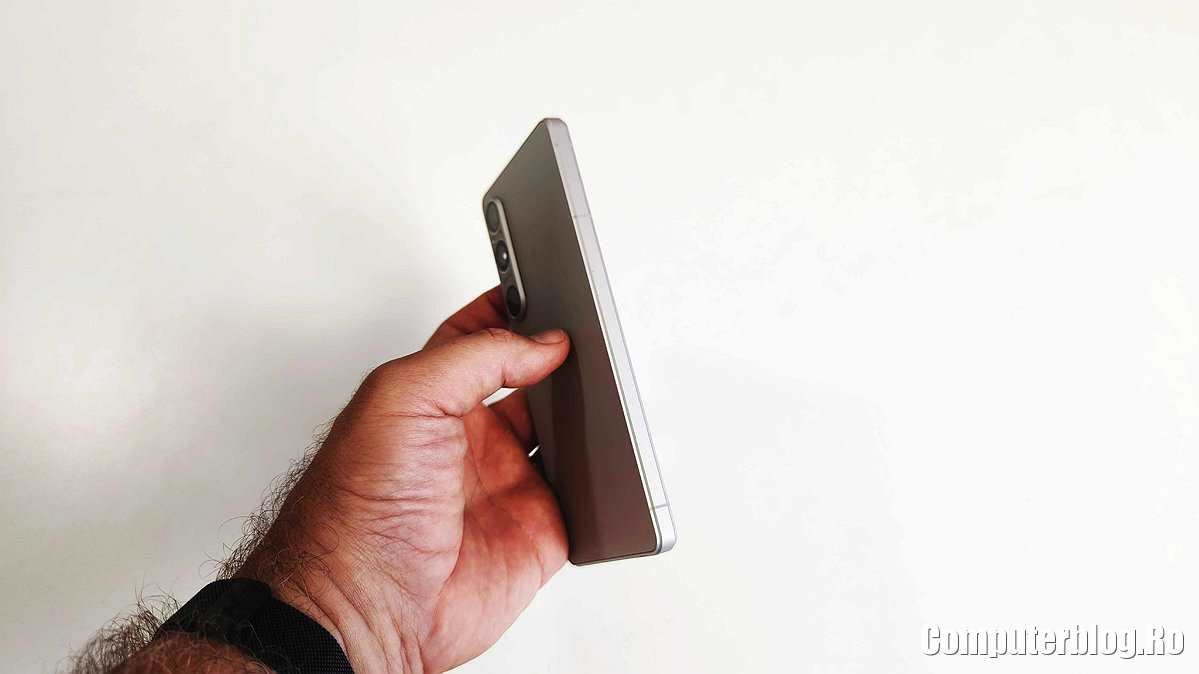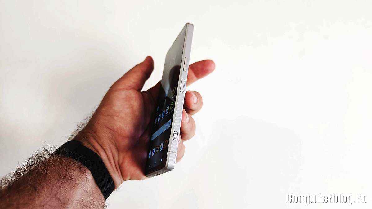 Dar să trecem la părțile pozitive. Pentru prima dată Xperia are un ecran normal. Au ales un panou LTPO OLED de 6.5 inch, dar cu formatul clasic de 19.5:9, spre deosebire de formatul cinematic de 21:9 adoptat la primele cinci modele. Și anul trecut ecranul era foarte îngust și lung, ca o telecomandă. Deși unii clienți îl lăudau și spuneau că este compact, conținutul nu se vede perfect pe el. Nu poți citi corect, nu poți scrie pe tastatură corect. Așa că este o decizie binevenită.