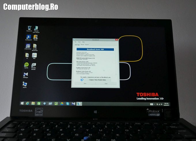 Cum spuneam și cu alte ocazii, poate fi util ca pe birou să ai un laptop complet, cu tastatură, dar în avion vrei să scoți doar tableta, pe care poți citi sau viziona filme, nu mai ai nevoie de tastatură și poate fi incomod. Windows 8.1 vă oferă productivitate maximă pentru afaceri, iar laptopul Toshiba este pregătit pentru actualizarea la Windows 10. Dintre toate tehnologiile încoporate, de notat rămâne autonomia, cam 14 ore conform testelor cu tastatura atașată, 7 ore și 30 de minute pentru tabletă. De asemenea, este de notat conectica variată, care la alte modele laptop a dispărut deja. Are mufă HDMI full pe dock și micro-HDMI pe tabletă, mufă de LAN, USB 3.0 și micro-USB pentru tabletă, mufa RGB, slot de carduri Micro-SD, mufe audio și HD audio, dar și multe altele.