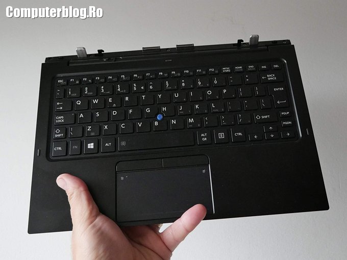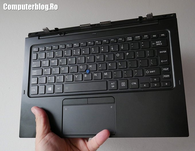 Tastatura este perfect aliniată, sunt doar câteva branduri care au tastatura perfectă la laptop. Touchpad-ul este foarte ok, iar pentru nostalgici au de asemenea TrackPoint sau Pointing Stick, acel mic buton de control situat între taste. N-am auzit pe nimeni că l-ar fi folosit, dar apare la multe sisteme business. Eu cu ecranul tactil folosesc din ce în ce mai puțin mouse-ul, nu mai folosesc deloc un TouchPad – poate doar dacă nu am mouse la mine – iar un astfel de TrackPoint n-aș folosi niciodată. Sau poate aș folosi dacă aș vărsa cafea pe TouchPad și n-ar mai merge în timp ce nu am nici mouse-ul la mine. Adică l-aș folosi poate forțat de împrejurări, dar nu aș alege să folosesc asta în mod normal.