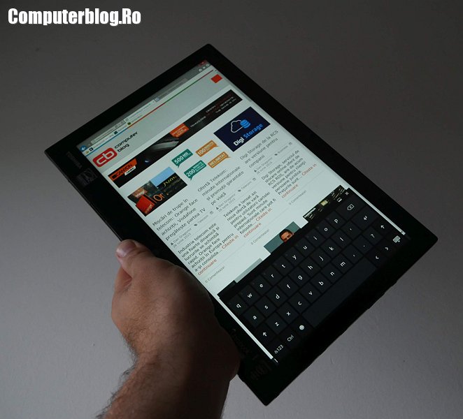 Ecranul este mat, Full HD, de 12,5 inch cu tehnologie IPS, o dimensiune foarte ok. Poți lucra normal pe el, dar este cam mare pentru tabletă. Totuși, dacă lucrezi pe proiecte business, s-ar putea ca 12,5 inch să fie o dimensiune ok și ca tabletă. Să încapă tot graficul și toate câmpurile din Excel.