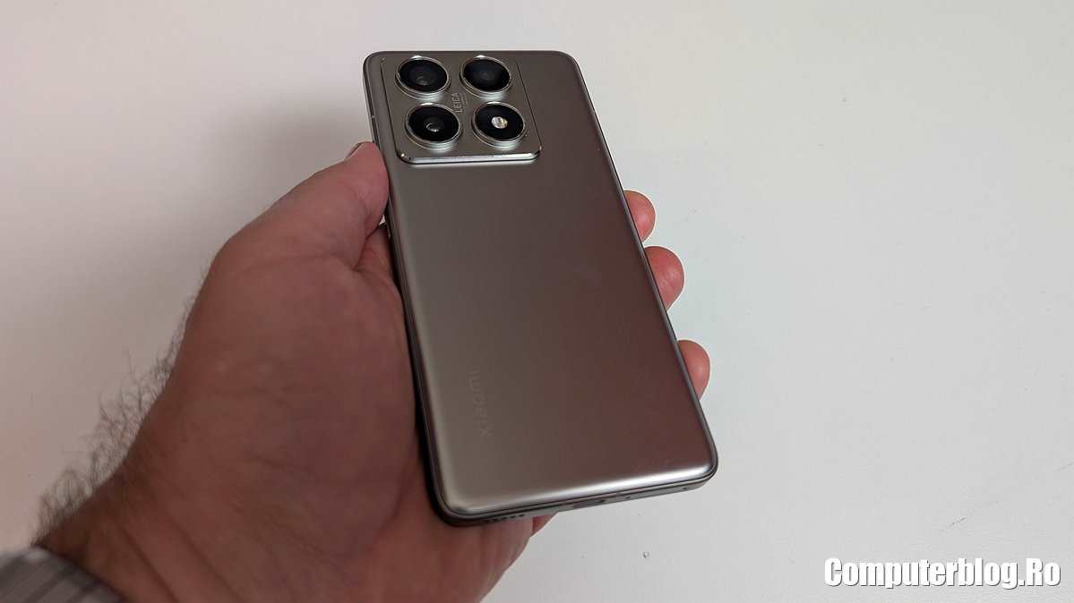 Acuma desigur, Xiaomi 14T Pro arată într-un mare fel, cu aspect metalic, precum. Deși culorile au titaniu în nume, adică Titan Gray, Titan Blue, Titan Black, telefonul este din aluminiu. Nu au anunțat nicăieri dacă ecranul este protejat de vreo sticlă specială. Are din fabrică o folie de protecție. Spatele are senzația de metal datorită culorii și a marginilor, dar este probabil o sticlă specială.