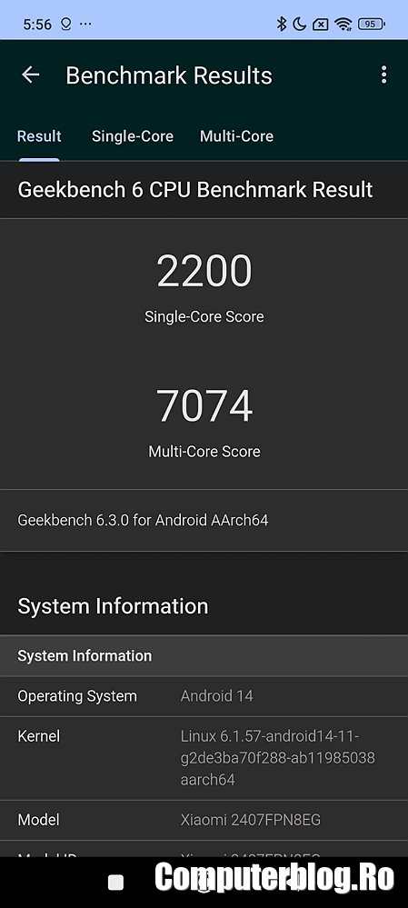Scorul GeekBench a fost de 2.200 single-core, cu aproape 7.200 de puncte multi-core. Pe scurt, peste Samsung Galaxy S24 Ultra și alte modele Android de top. Desigur, nu prinde din urmă iPhone 16 Pro Max, însă pe acesta îl bate la scorul Antutu, ceea ce este o mare realizare pentru un telefon cu un preț atât de bun.