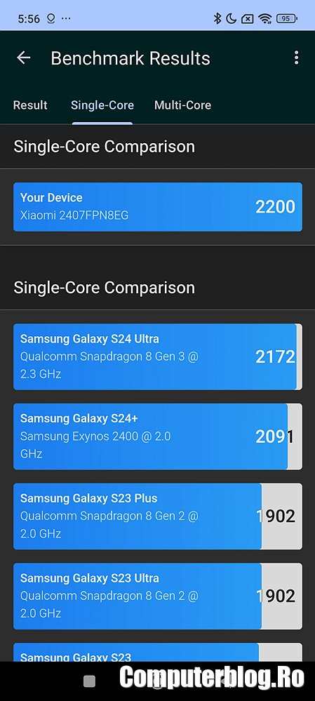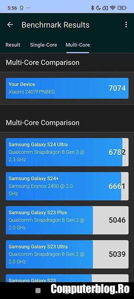 Am fost foarte impresionat de Xiaomi 14T Pro, mai ales că noi în primăvară nu am primit modelul Xiaomi 14 Pro, doar modelul compact Xiaomi 14. Oricum, este puțin și peste acela, dar este adevărat că modelul Xiaomi 14 este și el disponibil la preț foarte bun acum. Acesta avea Snapdragon 8 Gen 3, dar scorurile sale de performanță sunt sub Xiaomi 14T Pro. Să vedeți mai jos.