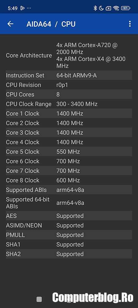Procesorul este excelent. Mediatek Dimensity 9300+ este realizat pe 4 nm. Are un nucleu mare Cortex-X4 care atinge 3.4GHz, apoi un cluster de trei nuclee Cortex-X4 la 2.85GHz și apoi patru nuclee ARM Cortex-A720, care sunt tot de putere, la 2,0 GHz. Acceleratorul grafic este Immortalis-G720, foarte bun. Scorurile le veți găsi mai jos.