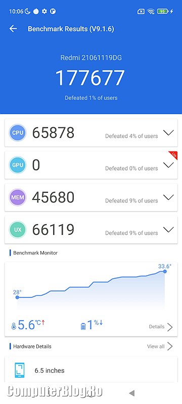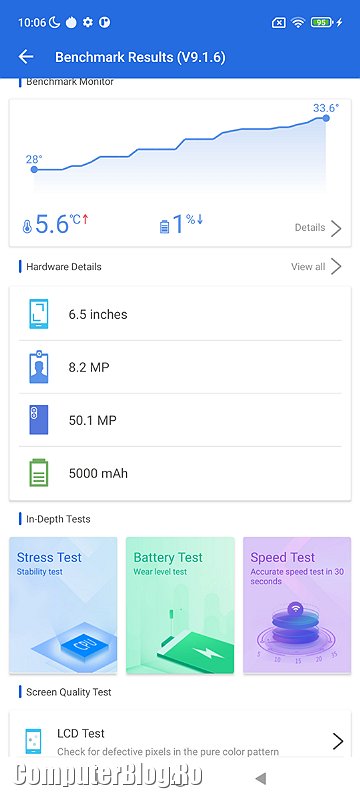 Fiind un telefon ieftin, nu am făcut pe Redmi 10 teste de gaming. Multe jocuri video normale o să meargă pe el, dar sunt unele care necesită resurse și ori merg greu, ori nu se vor instala deloc. Dar nefiind de gaming, nu prea are rost discuția. Copiii o să se descurce cu anumite tipuri de jocuri care merg. Cei care nu au buget, nu se pot aștepta la jocuri performante. Iar la restul se descurcă decent. Stocarea din păcate este foarte lentă, eMMC 5.0, cam cea mai lentă la ora actuală. De-asta cam toate se mișcă relativ greu. Vedeți mai jos mai multe teste realizate pe el.