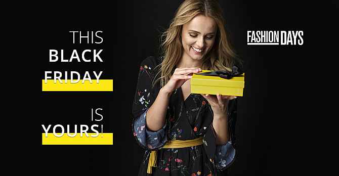 Black Friday 2017 la Fashion Days va foi cel mai mare Black Friday de pînă acum: peste 1 milion de articole în stoc și reduceri de până la 90%. La Fashion Days, Black Friday începe în cursul serii de 16 noiembrie, cu early start în aplicația de mobil, și continuă întreaga zi de 17 noiembrie. Vor fi în total 1 milion de produse la preț redus, dar și super-bunuri, precum genți Prada și Montblanc, ceasuri Carl F. Bucherer, bijuterii cu diamante Clogau.