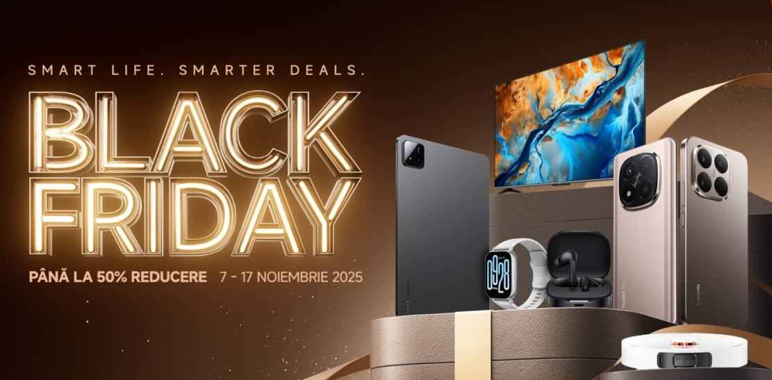 Xiaomi România a anunțat azi campania de Black Friday, între 7 și 17 noiembrie, pe site-ul propriu, cu reduceri instant de până la 56%. În plus, oferă discounturi graduale în funcție de valoarea coșului, produse suplimentare la doar 1 leu și 5% reducere adițională, cu Mi Points, la finalizarea cumpărăturilor.