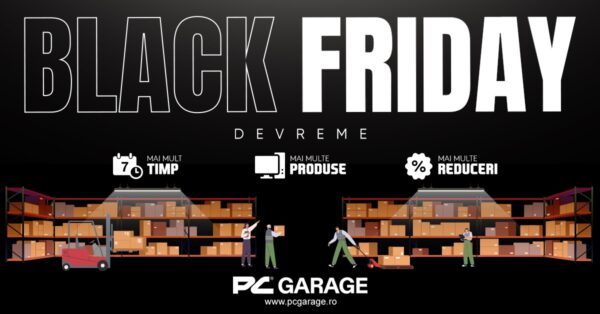 Pentru a le oferi tuturor mai mult timp de alegere și o experiență de cumpărături mai relaxată, PC Garage a decis să dea startul campaniei de Black Friday mai devreme. Astfel, pasionații de tehnologie pot profita din timp de reduceri semnificative la o gamă variată de produse. În ziua principală a evenimentului vor fi adăugate și alte oferte speciale, menite să completeze campania cu surprize atractive. Toate promoțiile sunt disponibile doar în limita stocurilor, așa că merită să acționezi rapid pentru a prinde cele mai bune prețuri.