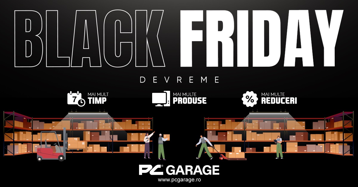 Din cauza competitorilor, PC Garage a anunțat azi Black Friday Devreme și a prezentat o listă de produse cu reduceri.