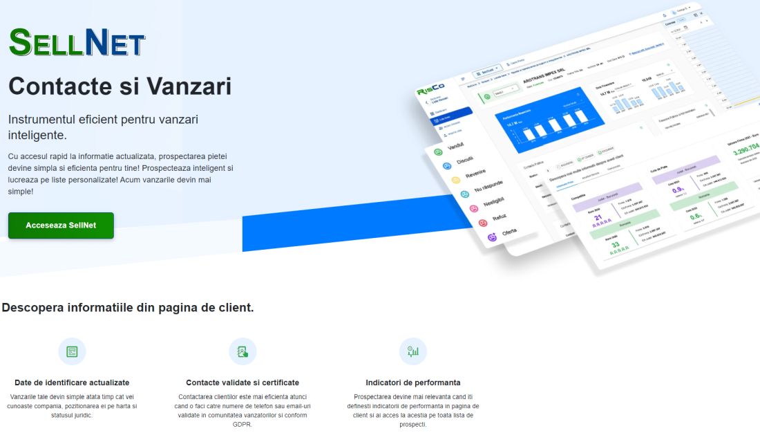 Risco a anunțat astăzi lansarea unei unelte unice pentru vânzări, botezată SellNet. Este primul sistem de acest tip din România, dezvoltat pentru a simplifica semnificativ activitatea de vânzări. Este acum accesibilă gratuit din contul de client RisCo.