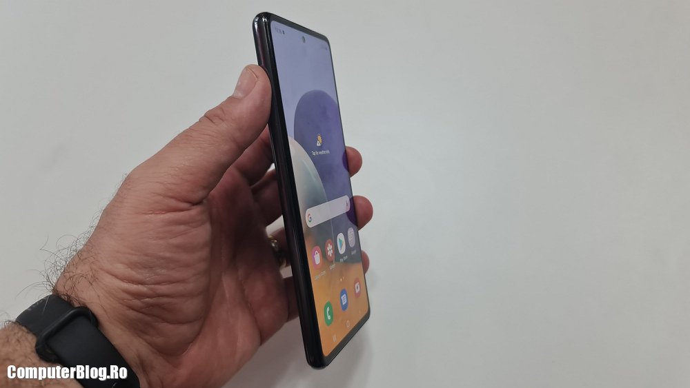 Acest model are un ecran cu diagonala de 6,7 inch, Super AMOLED, FullHD+ și cu rata de refresh 90Hz. Este unul dintre puținele telefoane Samsung care are în continuare de mufa de căști 3.5 mm jack.